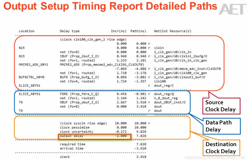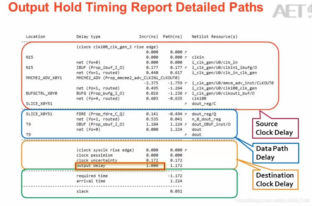 输出延迟(output delay)包括Tsu和Trace Delay(板间延迟)。